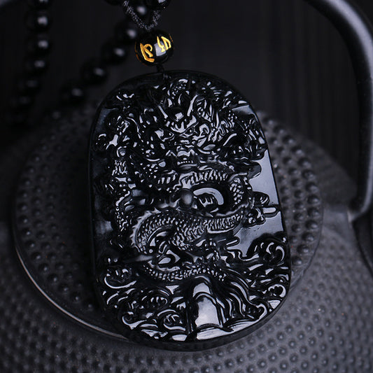 Dragon Natural Obsidian Necklace - A Herald of Success and Prosperity
